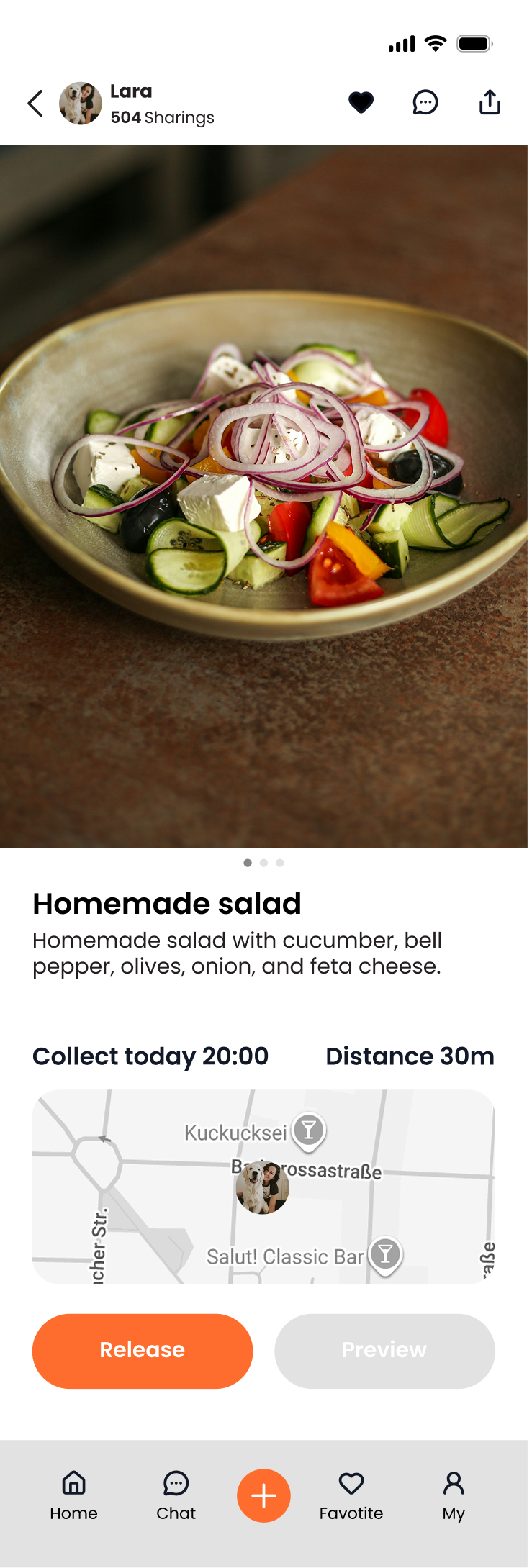 On the Browse page, users can view shared posts with an image, title, sharer, distance, and pickup time.