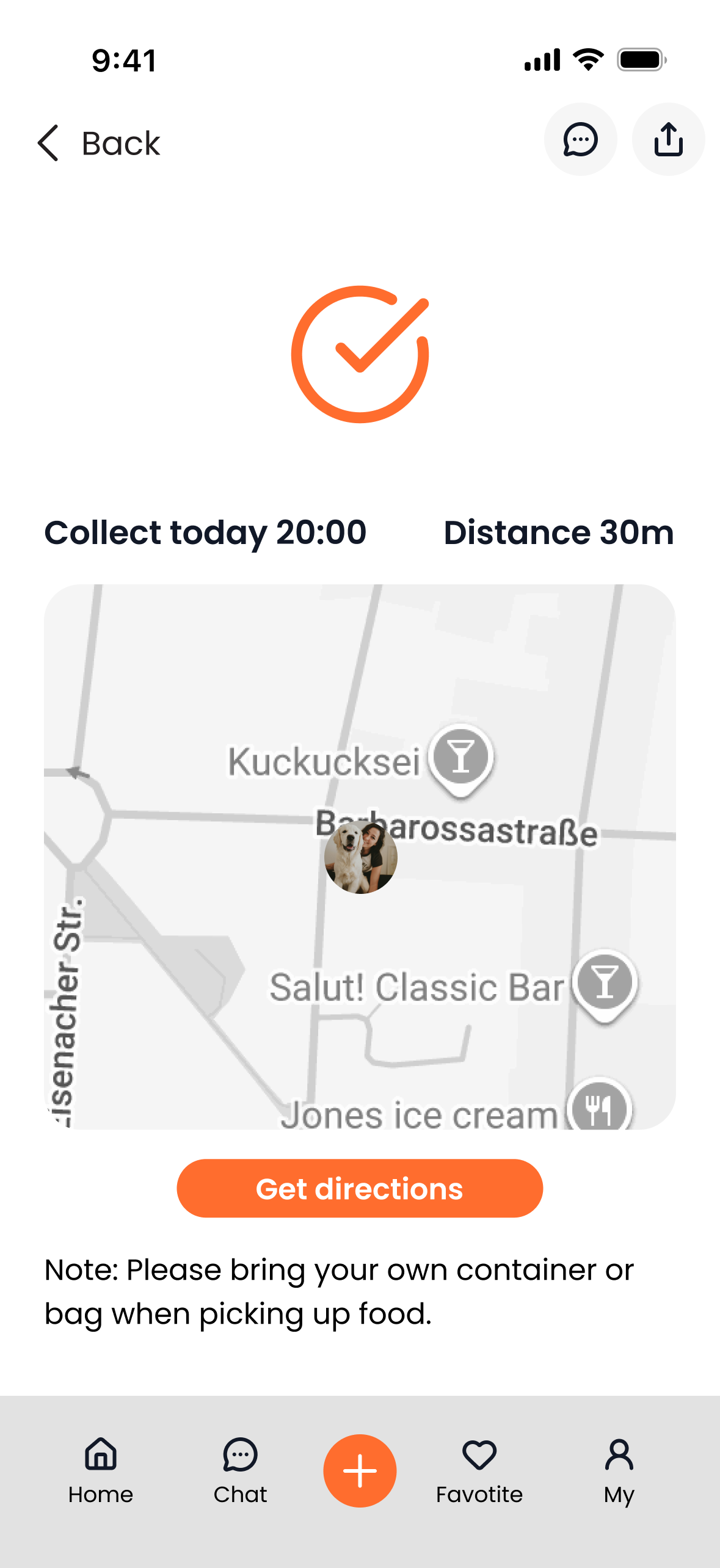 Users can view all their confirmed orders in My Sharings/Pickups, where each order is shown with its image, title, and provider.